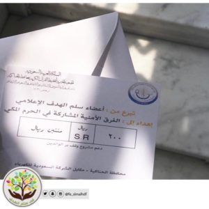 – التبرع لأحد الأوقاف الخيرية بنية الفرق الأمنية المشاركة في الحرم المكي من قبل أعضاء مشروع *في سلم الهدف* عرفاناً ووفاءً لجهودهم المبذولة.
