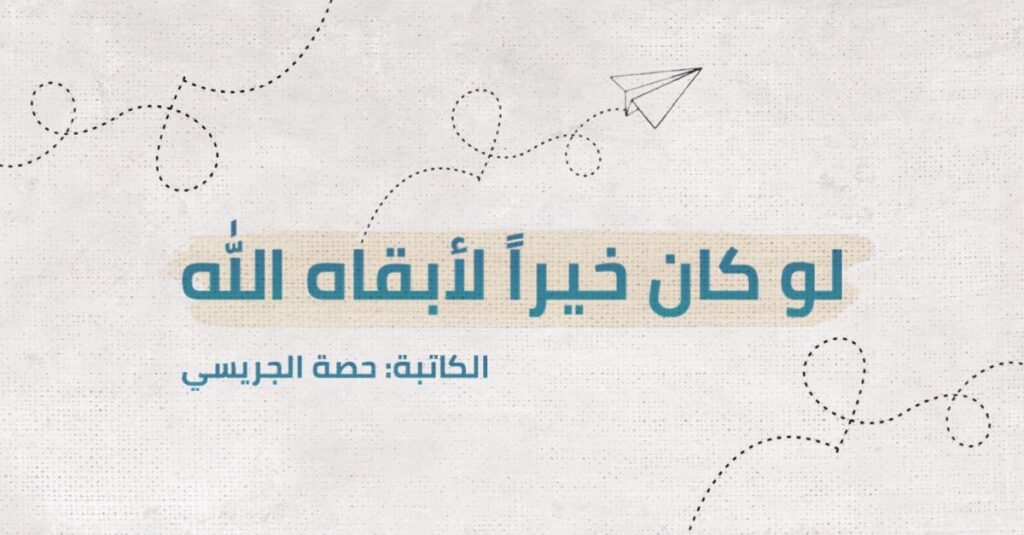ولو عرضت علينا تفاصيل حياتنا ومجرياتها لاخترنا ما كُتبَ لنا دونما زيادةٍ أو نقصان.